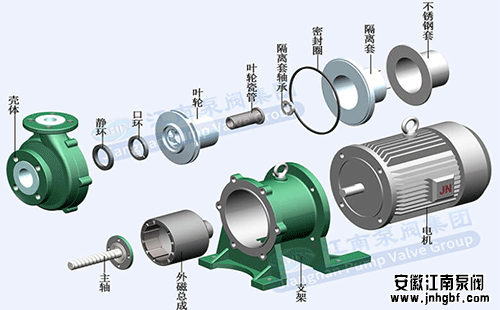 氟塑料磁力泵的結(jié)構(gòu)由泵、磁力驅(qū)動器和電機組成.氟塑料磁力泵的工作原理:n對磁體(n是偶數(shù))按照規(guī)則排列和組裝在磁致動器的內(nèi)外磁轉(zhuǎn)子上,使得磁體部分形成完全耦合的磁系...